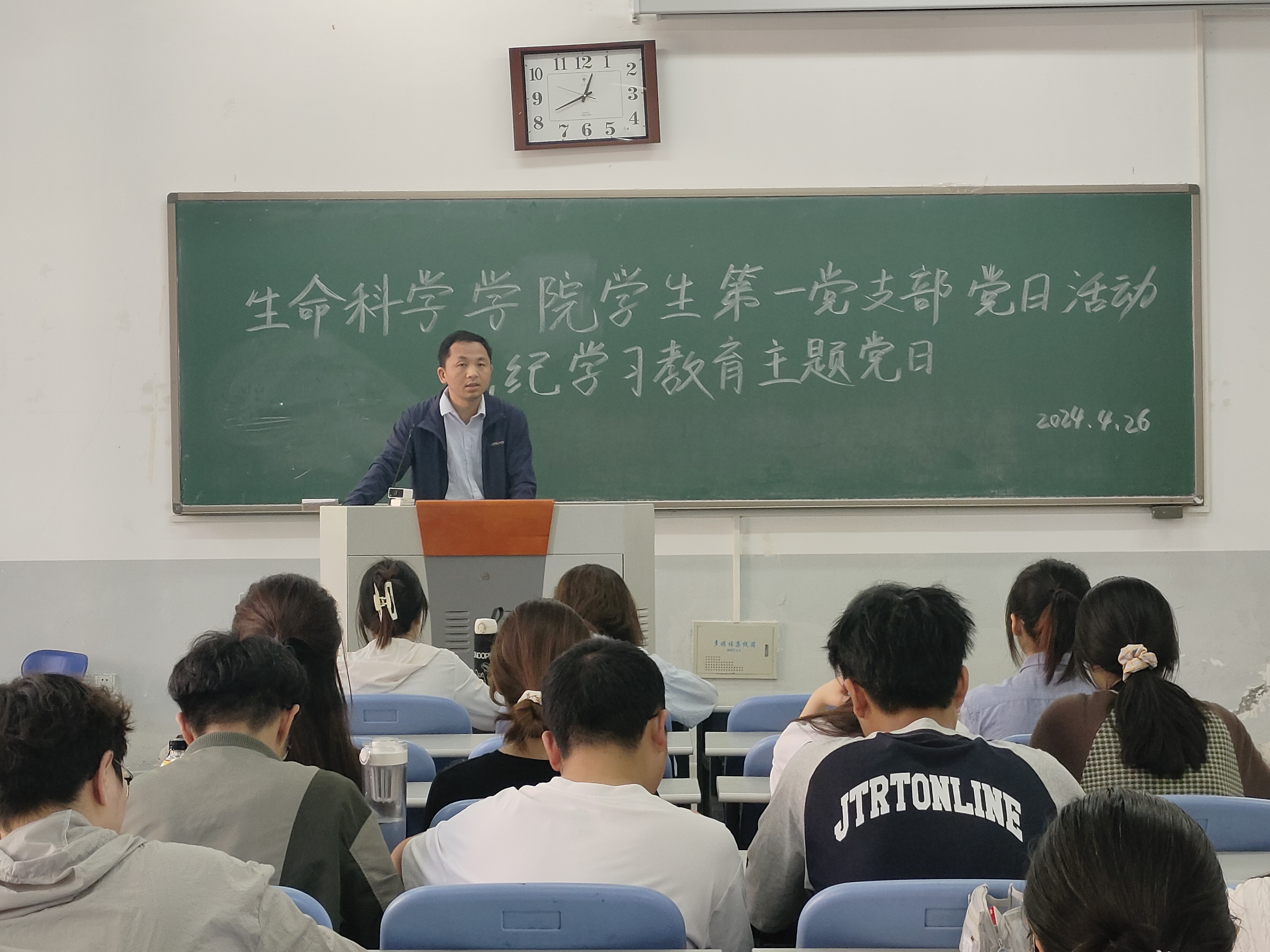 学生第一党支部围绕党纪学习教育主题开展党日活动。活动中,党员刘思影上台领读《条例》重点内容,四名学生党员分别围绕条例精神、国际形势、反腐败斗争等内容分享了自身观点与感悟。支部书记刘展总结并强调,守党纪、学党规与我们每个党员的生活密切相关,青年党员们作为党的未来中坚力量,更要严守党的纪律,发挥好先锋模范作用。