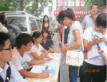 为了做好迎新接待工作,让新同学感觉到学校这个大家庭的温暖,迎新前期 我们做了充足的准备,拟定出《迎新生策划方案》,做了细致的分工安排,成立了迎新工作领导组,下设注册报到组、接待组和后勤保障组等。11 级同学都积极参与其中,由学生会成员领头,各部门分工合作、各施其职,工作开展的有条不紊。注册报到组主要负责核实新生身份及收取入学通知书准考证并登记注册。后勤组主要负责迎新接待站的物品准备及看置,接待组主要负责带领新生办理相关的入学手续。