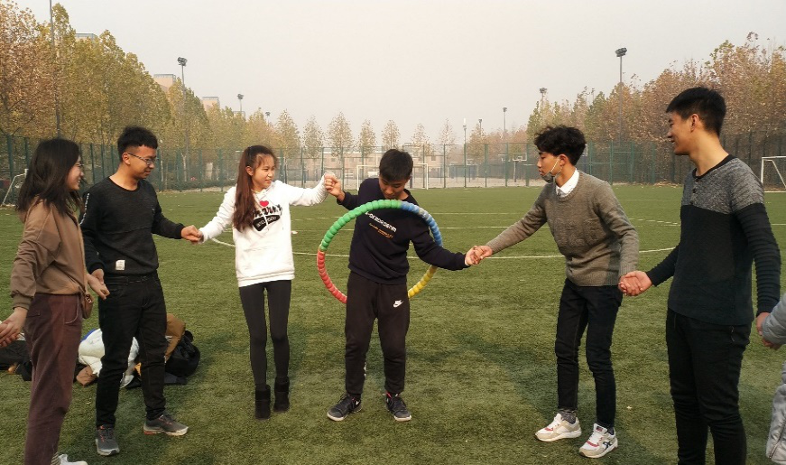 在3日上午,全体学生会成员在新区足球场集合,在随机分配出5小组并各自选出小组的班长和支书后,先后进行了“坐地起身”、“齐头并进”、接力赛和“穿越呼啦圈”等项目,大家其乐融融,氛围和睦。在吃完中午饭后,下午2点,全体成员又一同去实验楼会议室举办了茶话会,与此同时,也有部分同学开始了电子竞技。大家坐在一起聊天玩耍,气氛活跃异常,都玩的十分开心!最终,本次素质拓展活动圆满成功!通过本次拓展培训,在团队内部营造亲情化的团队氛围,增进团队内以及各团队之间成员的信任感、责任感,从而改善和增进团队内各成员的人际关系。在活动过程中,激发各团队成员的进取精神,培养成员的领导意识与管理才能,为在将来的工作成为一名主动而积极的团学联干部打下基础。