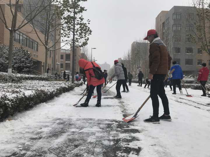 主要负责清扫海棠园、玉兰园以及教学楼前的积雪;在文化路校区色情片