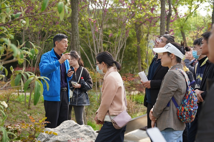 活动中,叶永忠教授带领大家在园区内寻秘探幽,从珍稀濒危物种到寻常乡土个体,从高大的乔木到低矮的草本,从争奇斗艳的观赏植物到色彩斑斓的野生花卉,逐一介绍每种植物的分类学识别特征、园林应用价值以及隐藏在植物背后的浪漫故事和文化元素。通俗易懂、细致入微的讲解使得在场的青年教师深受启发,也引来很多游人驻足、倾听和学习。
