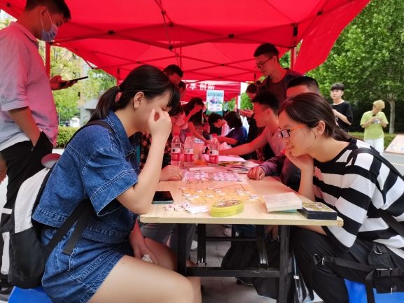 本次活动内容包括棋艺对决、棋逢对手和知识问答三个部分,面向全校师生开展。在“棋艺对决”中,同学们两两结合相互切磋棋艺;在“棋逢对手”中,同学们在社团志愿者的指导下破解象棋残局;此外,同学们亦可前往答题区,回答随机抽取的棋艺知识相关问题,五题答对三题即可获得精美礼品一份。活动期间,现场气氛热烈,寓教于乐,在答题中,师生们既增长了棋艺知识,又收获了快乐。同时,来自不同学院的师生在棋盘上进行切磋,使围观同学感受到“包罗万象方寸里,弹指千军空格间”的激昂。游戏过程中,诗艺轩社团志愿者积极协调配合、维持现场秩序,确保了此次活动顺利进行,展现出色情片 社团志愿者良好的精神风貌。