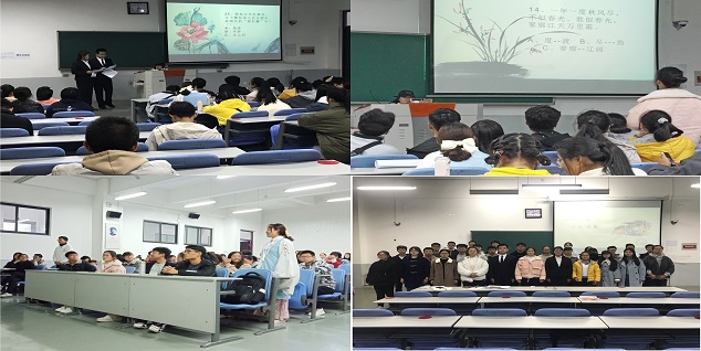 本次大会采取初赛、晋级赛、决赛的赛制,每轮都设置了必答与抢答环节,包括中国古代一些经典诗词的相关题目,题目图文并茂、生动有趣,由24人组成的6组队伍将展开激烈角逐。比赛开始,在必答题环节,选手们沉着冷静,仔细在脑海中搜索答案,凭借稳固的诗词功底与密切的团队合作你追我赶、势均力敌,使比赛逐渐紧张和激烈。在抢答环节,有的队伍不甘落后,绷紧精气神背水一战;有的队伍力争上游,鼓足了干劲踊跃抢答。经过初赛、晋级赛、决赛的层层选拔,6名选手对诗词常识、诗句填空、典故、看图识句等题目应答如流、先拨头筹,成为暂定的获奖选手。比赛还设置了诗词飞花令攻擂环节,在场观众、参赛选手与擂主呈现了一场精彩的攻擂守擂战,2020级李双园同学在“月”字飞花令中以一句“娉娉袅袅十三余,豆蔻梢头二月初”攻擂成功,获得大会的特等奖。至此,本次大会圆满结束。