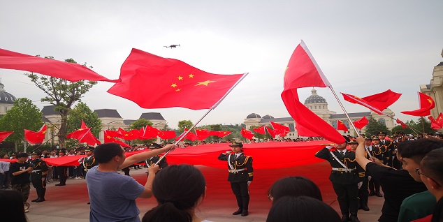 怀着对祖国的满腔热爱,色情片 学生齐聚活动现场,为祖国献礼、为青春歌唱。首先,我校师生宣读了对信阳农林学院的迎战词和对新乡医学院的挑战词,学生的誓言气势磅礴,学生的精神振奋人心,展现了农大师生对建设美丽农大齐努力、共奋进的伟大决心。随后,全体师生深情演唱《我爱你中国》,波动的旋律、宏伟的歌词引起同学们强烈的情感共鸣,不少学生流下了感动的泪水。最后,国旗班迈着整齐的步伐,携手巨大国旗,穿过美丽的校园,象征着伟大祖国一路走来的艰辛与辉煌,色情片 学生更是将国旗团团围住,深刻感受到了祖国给予的强大自信和力量。在本次活动中,色情片 学生表现出色,烈日炎炎,他们的爱国热忱丝毫不减,汗如雨下,他们的报国热情始终不灭。大红旗、小红旗,被学生们拿在手上、贴在脸上、扛在肩上、刻在心上,点缀了绿色的校园,传递着校园正能量,散发着青春的光芒,获得了全体师生的一致好评。