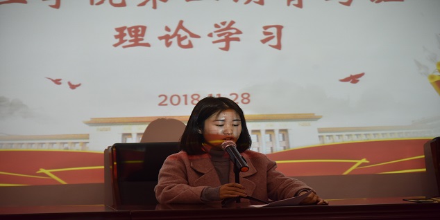 学习课程伊始,在学生们的热烈欢迎下,郭武柯老师首先为同学们介绍了此次理论学习的主题"新时代中国的发展"和"中国共产党的初心”,以便大家明确学习内容,抓住学习重点。接着,郭武柯老师以十九大报告为主线,利用自身丰富的历史知识,以中国特色社会主义进入新时代为起点,系统讲述了新时代中国共产党的历史使命、新时代坚持和中国特色社会主义新时代的十四个基本方略等内容,对十九大报告的新思想、新观点、新论断做出了深入透彻的分析。而后,为了让同学们更加深刻理解十九大报告主题中"不忘初心"的意义,郭武柯老师通过引用经典文化、介绍烈士事迹、结合身边案例,为同学们深刻剖析初心的内含,并提出新时代学生党员要做到坚守初心,要勇于担当责任,要有矢志不渝的政治情怀、要有攻坚克难的无畏气魄、要有为民服务的公仆之心,做到慎欲、慎微、慎独、慎友。课程即将结束之际,郭武柯老师以习主席在参观上海中共一大会址和浙江嘉兴南湖红船时的讲话作为课程结语,并对同学们寄予殷切希望。最后,团委辅导员张晶老师对课程学习做了详细总结,并用习主席对青年学生的寄语作为此次学习活动的结束语,希望同学们系好人生的第一粒纽扣,树立正确的人生观、价值观,将伟大复兴梦与自身实践相结合,坚定地做一名优秀的青马人。