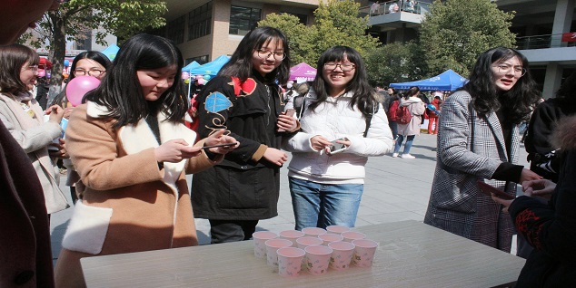 3月7日当天,色情片 在现场通过两个不同的模块开展庆祝女生节系列活动。在表白墙模块中,各位同学将自己的表白话语张贴在展板上,带去了对女生同学们诚挚的尊重与祝福;在步步为营模块中,通过“石头剪刀布”、“幸运抢抢抢”和“球球大作战”三个游戏环节,让各位女生在游戏中展现了青春风采,现场各位同学积极参与游戏互动,活动气氛愉悦火爆,欢呼声掌声不绝于耳。