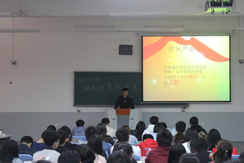 本次评选大会共有17级14个班级参与竞选。大会开始,主持人李世浩首先对此次评选活动进行了规则讲解,接着宣布公开讲评活动正式开始。各个参赛班级按照事先的抽签顺序依次进行了PPT展示和班级介绍讲演,各班代表讲评PPT的方式各不相同,或生动活泼、或慷慨激昂。PPT内容主要包含各班成员,班级活动情况,班级学习情况和班风、学风建设等,各班代表积极地向评委和观众展示本班级团结进取的精神,积极向上的学习氛围,富有创新的班级活动,生动活泼的同学情谊。大会最后,团委张晶老师对本次评选活动进行了点评,提出了凝聚“班魂、年级魂”的观点,对表现优秀的班级提出了表扬,并表达了对学生班集体发展的希望与期盼。
