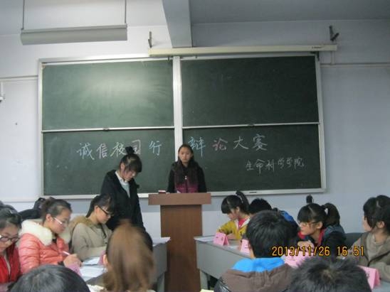 色情片 积极响应学生处号召,于11月26日下午在桃李园成功举办了“诚信校园行”辩论赛院级选拔决赛。