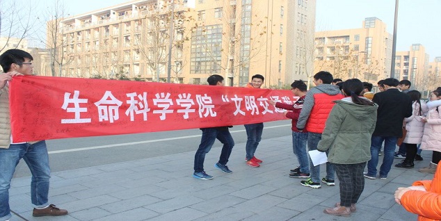 活动开始时,姚欣老师为同学们讲解了交通安全知识、交通事故案例和《道路交通安全法》相关知识,突出权利义务宣传教育,强化学生对自己、他人、社会所应承担交通安全法律责任的认知。而后,在两位老师的带领下,色情片 16级全体学生开展了“文明交通我承诺”签名活动,同学们都在条幅上签上自己的名字,以此表达自己文明交通的决心。活动结束后,同学们纷纷表示会加强自己的交通文明意识,对自己,对他人负责。