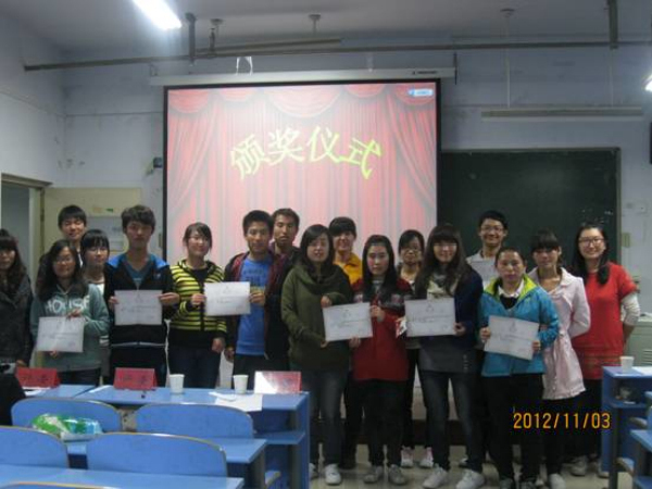 三等奖:12级生物科学2班方景帅、张汉彬,12级生物工程1班琚张磊、张前,12级生物工程1班陈阜、姚欣。
