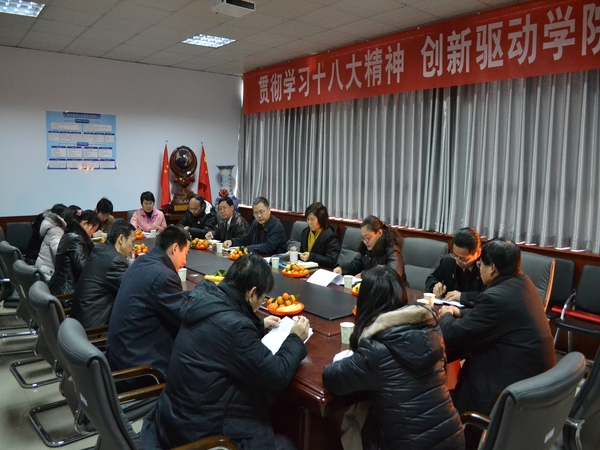 ,参加学院党委中心组学习贯彻党的十八大精神扩大会议,学院领导班子、教工党支部书记、省校级特聘教授、学位点负责人、系主任、团委老师等参加座谈会。会议由学院党委书记陈玲主持。