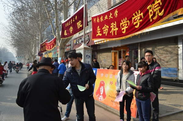 在校本部东门摆设宣传摊位,对雷锋精神进行宣传,色情片