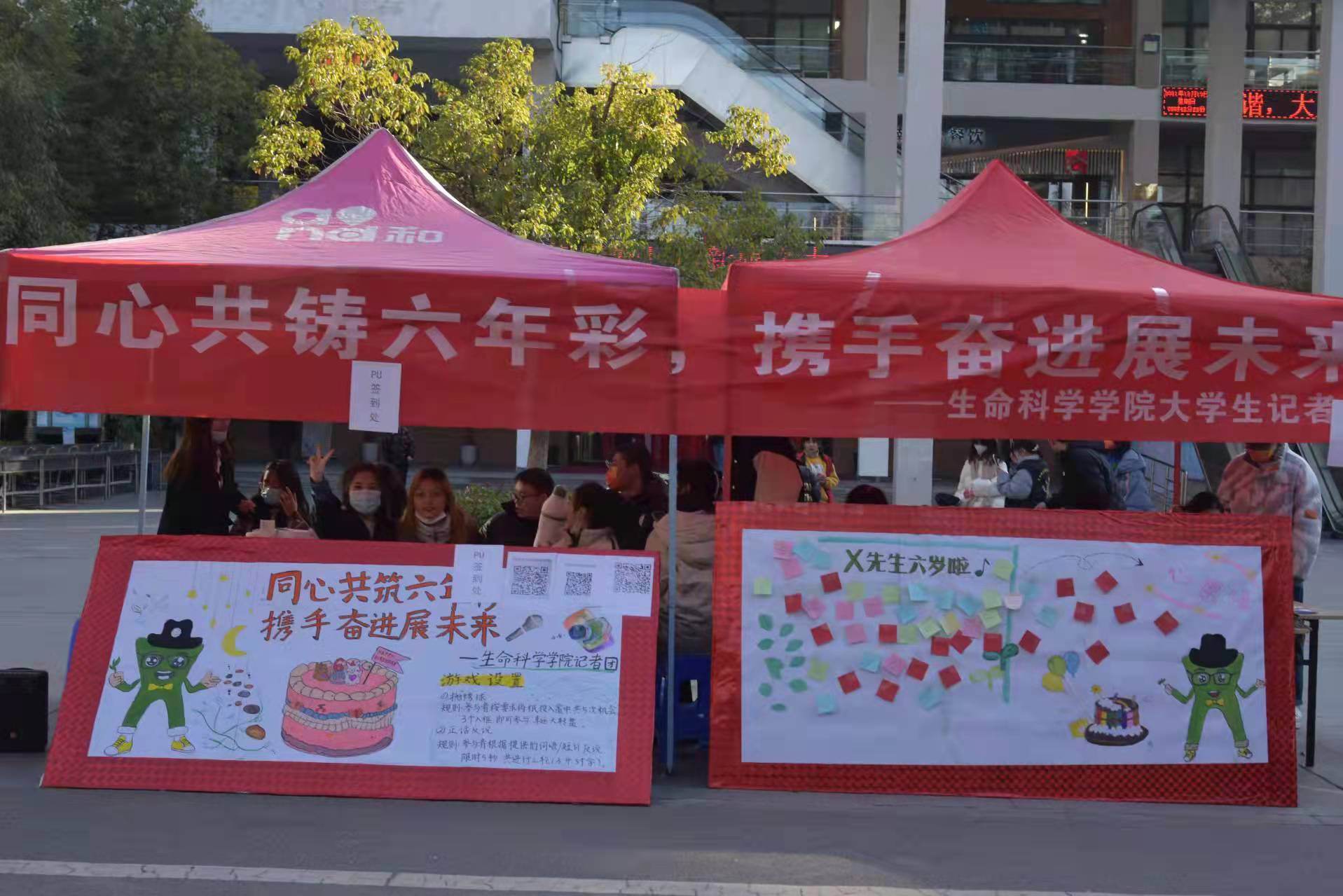 此次周年庆以“同心共铸六年彩,携手奋进展未来”为主题,由院记者团主办,活动面向全校师生,有线上和线下两种方式。线上参与活动者,凭转发色情片 官方QQ、微信、微博活动预热推文的集赞数或抽奖结果兑换奖品。线下活动由趣味小游戏“抛绣球”、“幸运大转盘”、留言板等部分组成,参与者完成挑战即可现场抽取奖品。穿着玩偶服的“X先生”活跃在现场,吸引同学们驻足围观互动,现场气氛热烈。此次活动在同学们真挚的祝福留言中圆满结束。
