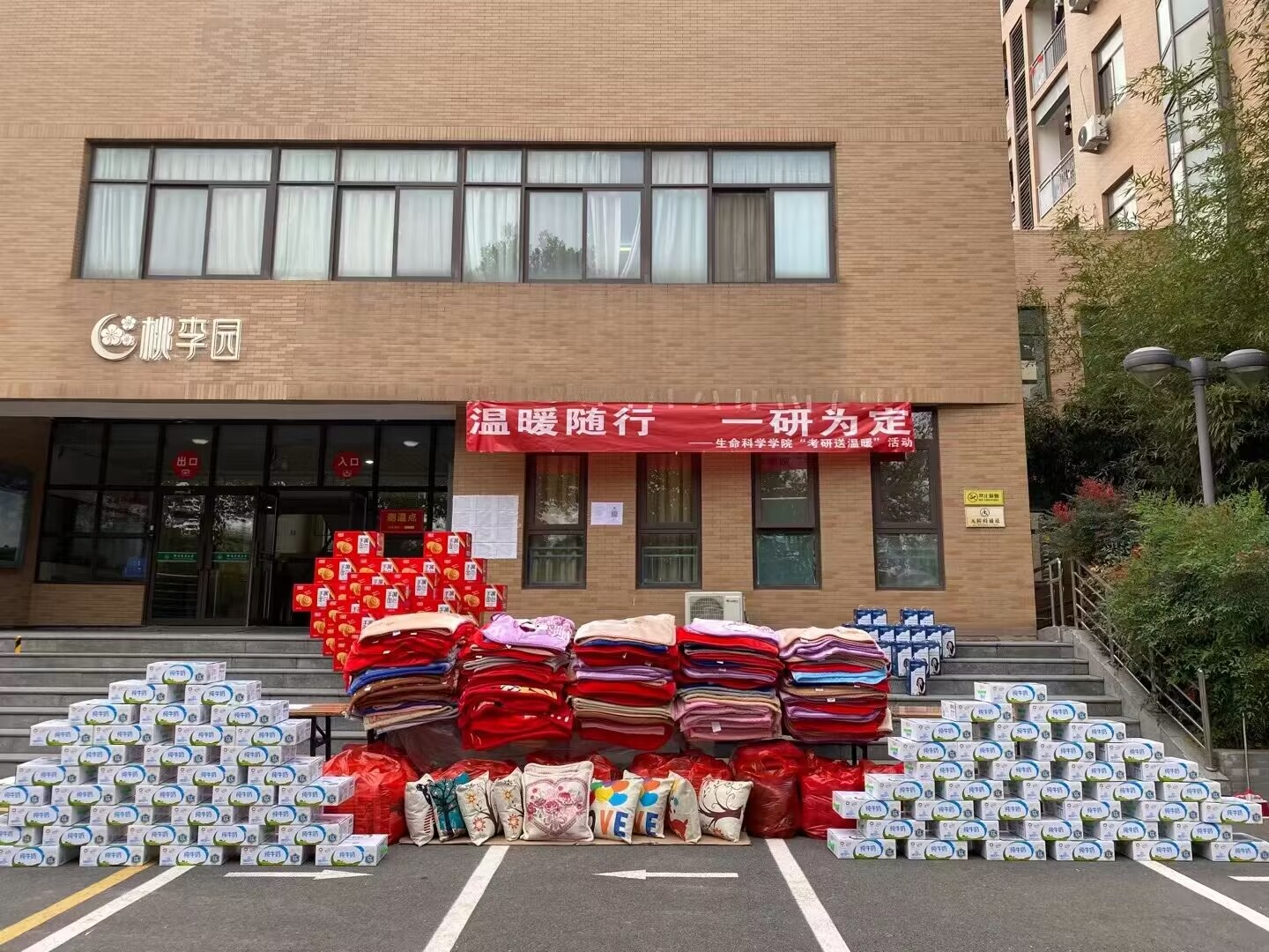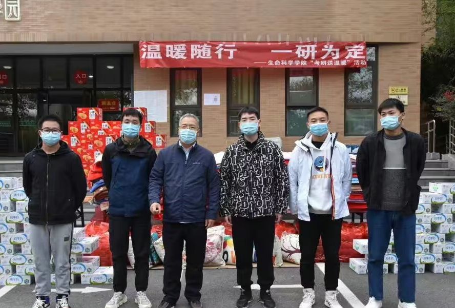 活动伊始,吴建宇向考研学生表达了慰问和关心,要求大家在考研备考的同时重视毕业实习,与实习导师加强沟通;分享了一些帮助大家顺利考研的经验和技巧,表达了对考研学子的美好期盼与祝福,并鼓励考研学生利用好学院的各种考研资源,多向专业前辈请教;临近考试,希望大家坚定信心、注意疫情防控、保证身体健康。张琨向同学们鼓劲,希望大家正确看待考研竞争,发扬农大学子、生命学子的奋斗精神,在考研路上奋力一搏,交一份满意的答卷。随后,学院领导老师给同学们发放物资,此次活动物资包括毛毯、坐垫、抱枕、面包、牛奶等,同学们领取物资后,纷纷表示将不负学院关怀,惜时如金,全力以赴,书写青春的华丽篇章。