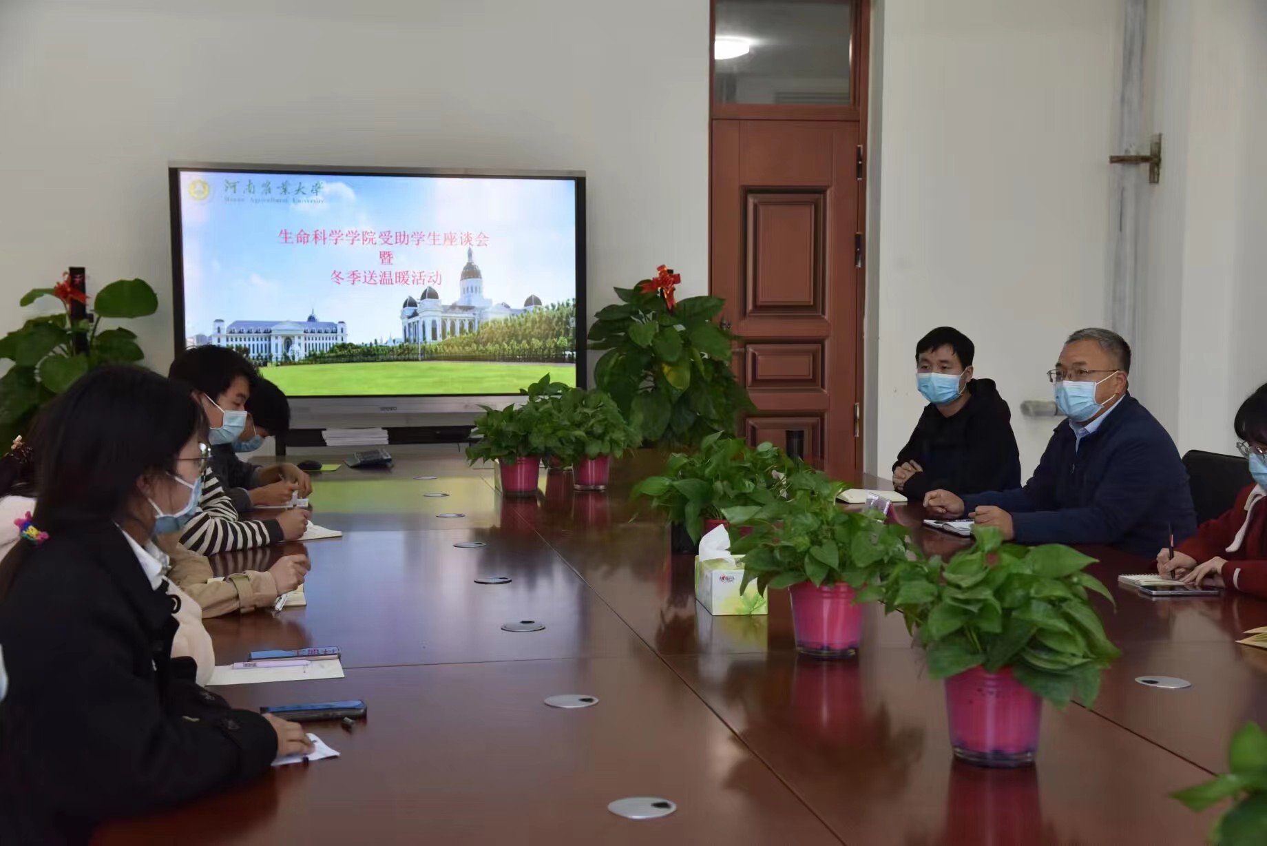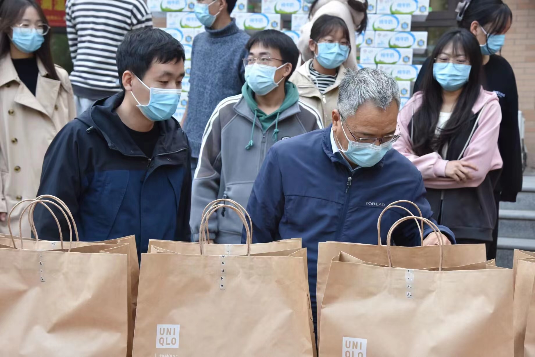 座谈会上,受助学生代表陆续发言,提出了在学习和生活中遇到的各种困惑,同时也积极对学校学院发展建言献策。针对各学生代表提出的问题,参会领导逐一进行详细解答。吴建宇就目前疫情的严峻形势,提醒大家一定要提高自身防范意识,遵守疫情防控各项措施,合理安排作息时间,减少外出,做好防护;同时也要认真学习,积极备考期末考试和英语四六级,学会自律,保证学习效率。张琨强调,在备考之余要重视身体健康,合理安排学习和生活,用正确的方式缓解学习压力。随后,领导老师们于桃李园楼前为受助学生发放衣服、毛毯和牛奶等生活用品,并叮嘱大家做好冬季的保暖工作,保证身体健康,心怀感恩之心,端正奋发向上的求学态度,以实际行动感恩学校、回报社会。