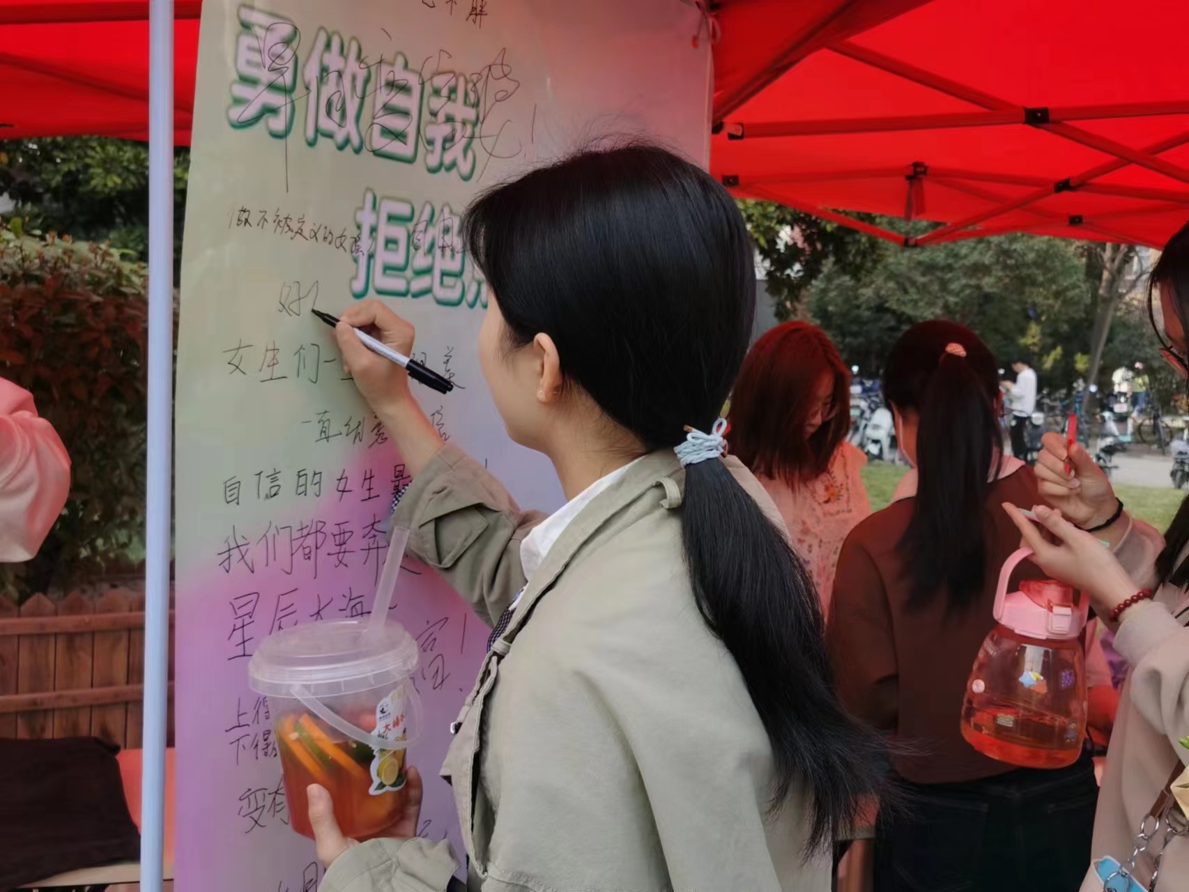 本次活动内容分为“撕掉标签,不被定义”、“拒绝焦虑,畅所欲言”、“桃李寻宝”三个环节。在“撕掉标签,不被定义”环节中,展板海报上会贴有写着对女性刻板印象的“标签”,女生们需要亲手撕掉冠在女性身上的卡片,拒绝被定义,活出精彩自我。伴随着一个个“标签”被撕下,一个个崭新的寄语又重现在板报上,这是参与“拒绝焦虑,畅所欲言”活动的女生们在为自己发声,女生们在便利贴上写下自己想要说的话与祝福亦或是心中的焦虑,写下她们最想打破的对女性的偏见或者有关对女性偏见的故事等,并将其放在指定的箱子中,将语言化作打破偏见的力量。女生们敢为自己发声,不再畏惧偏见和旁人的冷眼,做自己人生的掌舵人,与此同时,完成前两项环节的女生们可以前往“桃李寻宝”的活动现场,她们拿着获得的线索,前往校园的各个角落去寻找事先藏好的鲜花,许多女生在细心查找后得到自己的鲜花,也获得学院对每一位女生在女生节的关爱和祝福。活动期间,也有不少男生来到如火如荼的活动现场,用笔写下了对女生们的欣赏和赞美,为色情片 女生献上了节日祝福。