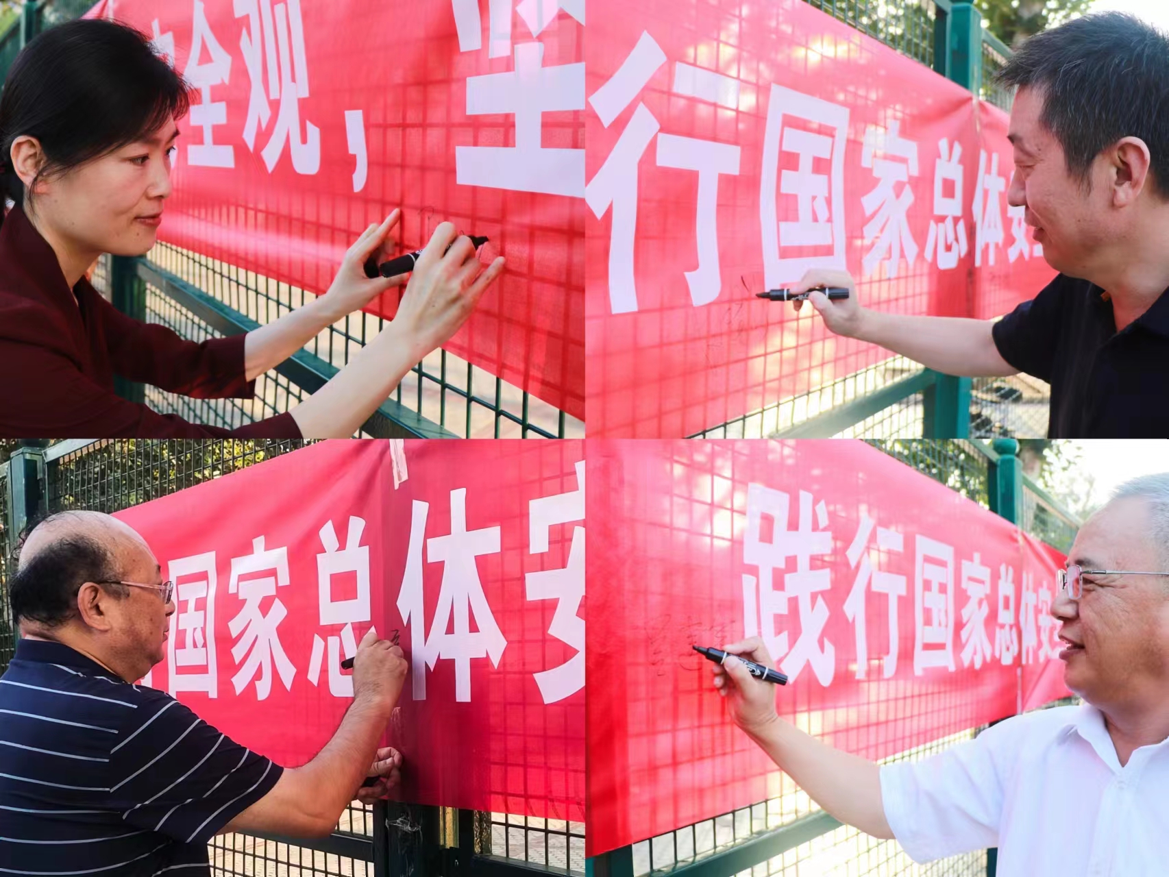 伴随着响亮的国歌声,五星红旗徐徐上升,同学们的目光也逐渐坚定起来。升旗仪式结束后,吴建宇讲话,他指出安全是一切工作的基础,需要引起每个人的重视,并对同学们提出三点要求:一是要全力维护国家安全大局,进一步提高思想认识,做国家安全的忠诚维护者、坚定捍卫者,努力奉献个人力量;二是要努力营造校园安全氛围,严格遵守学校各项管理规定,做好个人安全管理的第一责任人,提高学习生活中安全风险的管控能力,提升个人防诈骗意识,共同创造温馨学习环境;三是自觉担当强国有我使命,加强专业知识学习,提升自身专业本领,为进入生物经济时代储备知识和能力,努力做更好的自己,担负强国有我的时代使命。最后,陈明明带领全体师生宣誓,期望同学们能够牢记安全准则,自觉规范行动,强化安全意识,努力创建平安校园。宣誓完毕,同学们进行“践行国家总体安全观,坚定不移永远跟党走”签字活动。