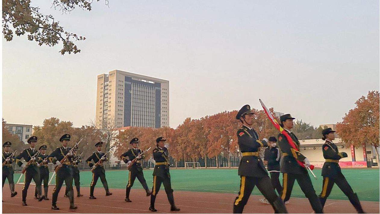 仪式开始,国旗护卫队庄严入场,正步护送五星红旗。伴随着雄壮的国歌奏响,五星红旗冉冉升起,全体师生肃立,奏唱国歌,行注目礼。