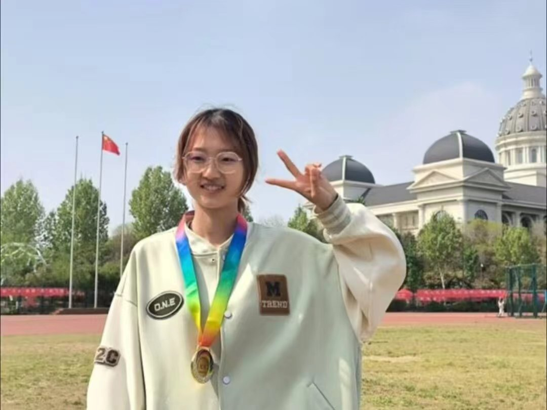 学生李雨欣荣获第53届校运会女子100米决赛冠军