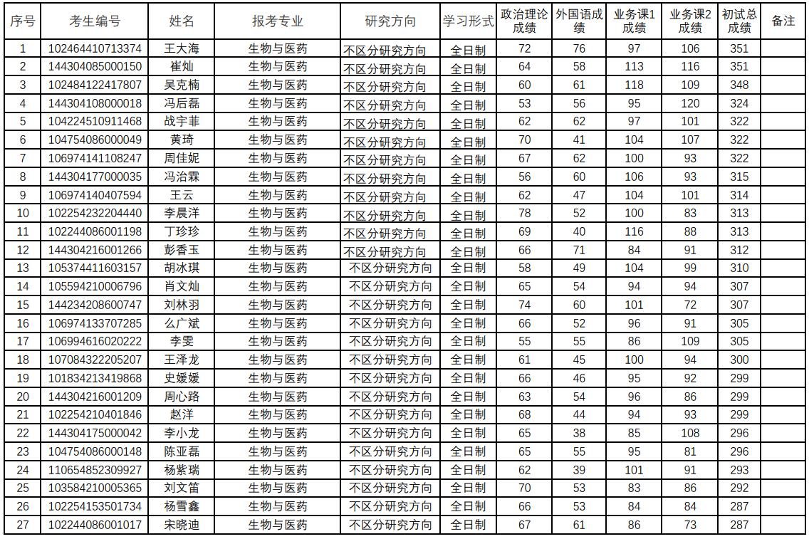 色情片 生物与医药专业调剂生复试名单(第二批)