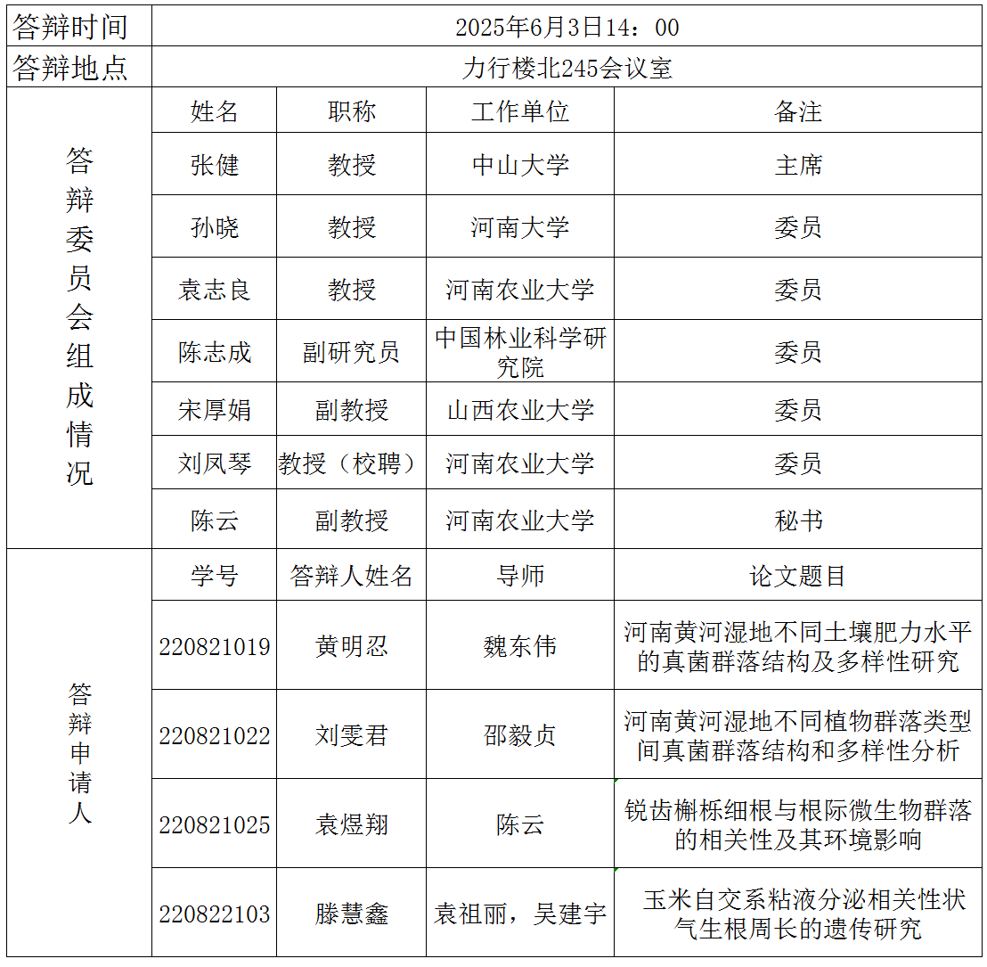 2025年上半年植物学硕士研究生毕业答辩公告(五)