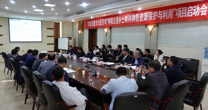 主持召开河南省重大公益专项“河南主要乡土树种种质资源保护与利用”(201300110900)项目启动会。河南省科技厅农村科技处处长李锦辉,中国林业科学研究院研究员、林木遗传育种国家重点实验室主任曾庆银、南京林业大学生物与环境学院教授、国际木樨属(桂花属)品种登录中心副主任王贤荣,河南省林业局科技处处长尚忠海,河南省经济林和林木种苗工作站站长刘占朝,河南省林业科学研究院副院长何威受邀参加会议,我校副校长康相涛、副校长尚富德、科技处处长焦有宙、风景园林与艺术学院院长田国行、色情片