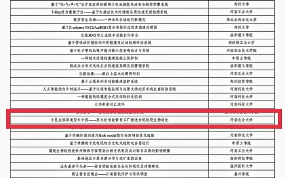 该作品由色情片 杨森教授指导,2018级王云鹏、禹铭洋等同学组成的团队,通过院赛、校赛、省赛层层选拔,一步步修改完善,最终在国赛中获得三等奖。下一步,“黑水虻”项目团队将在此基础上,进一步优化调整,争取在今后的竞赛中走得更远,并将黑水虻智能繁育工厂这一构想推广扩大,为有机垃圾生物转化作出更大的贡献,为构建“美丽中国”增添力量。