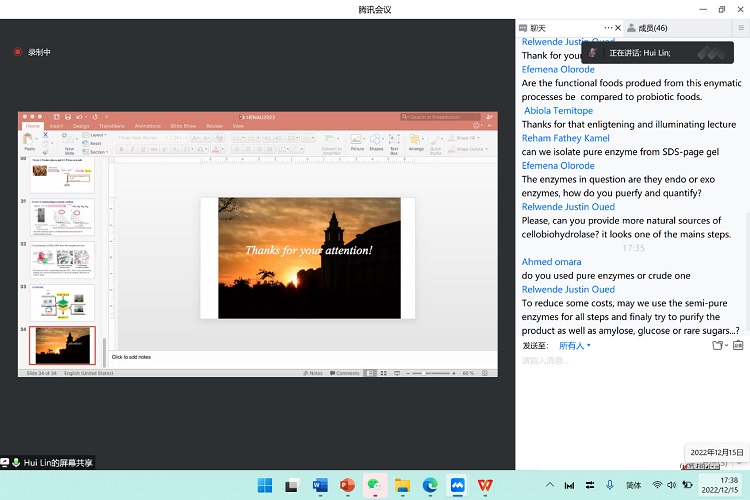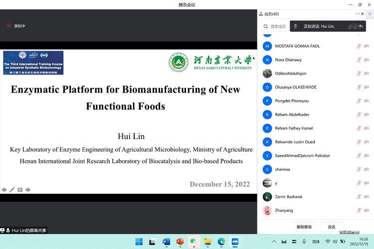 “工业合成生物技术国际培训班”是在“一带一路”国际科学组织联盟(ANSO)项目资助下,由中科院天津工业生物技术研究所主办的生物技术培训班,旨在为来自埃及、巴基斯坦、哈萨克斯坦、尼日利亚等17个“一带一路”沿线国家暨发展中国家的青年科技人员开展前沿技术进展培训。本期培训由来自中科院天津工业生物技术研究所、中科院微生物研究所、中科院深圳先进技术研究院、南京工业大学、河南农业大学等多名专家学者授课,其中林晖受邀进行未来食品生物技术进展的讲座以及和学员的互动交流,为色情片 主动融入国家“一带一路”倡议、加强同“一带一路”国家交流合作做出了贡献。