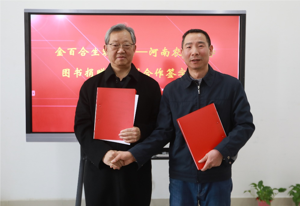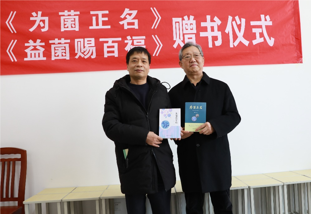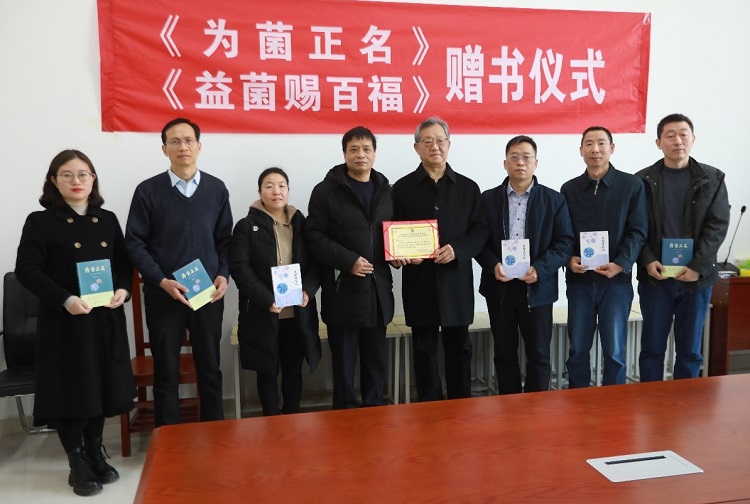 岳建文代表校图书馆接受了杜董事长捐赠的二套专著《为菌正名》和《菌赐百福》,并向杜董事长颁发了图书捐赠证书。《为菌正名》和《菌赐百福》是杜董事长撰写的益生菌方面的专著,引经据典,横贯中西,全面论述了有益菌对人体、动物、植物和环境的有益的重要作用,微生态虽小,但作用极大。然而,这些有益作用需要人们尊重自然、爱护环境、维护生态平衡,才能发挥作用。岳建文表示,两套专著进入我校图书馆流通后,将对我校师生创建绿色生态农业大有裨益。