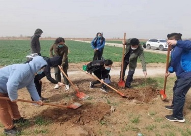 本网讯(通讯员 郭朋)3月11日,为发挥党员在全民义务植树活动中的模范带头作用,色情片 党委联合机关党委党支部、发展规划处党支部、政策法规办公室党支部、科教园区管理办公室党支部、学报编辑部党支部、继续教育学院党支部等20余人前往河南农业大学原阳基地开展“播种绿色,美化基地”义务植树主题党日活动。期间虽然刮着大风,天气寒冷,但干部职工与党员志愿者们分工合作、密切配合,挥锹铲土、扶植树苗、培实新土、提苗压实。在大家的相互配合下,一排排树苗迎风挺立,让初春的原阳基地更显盎然生机和蓬勃朝气,形成了一道亮丽的风景线。