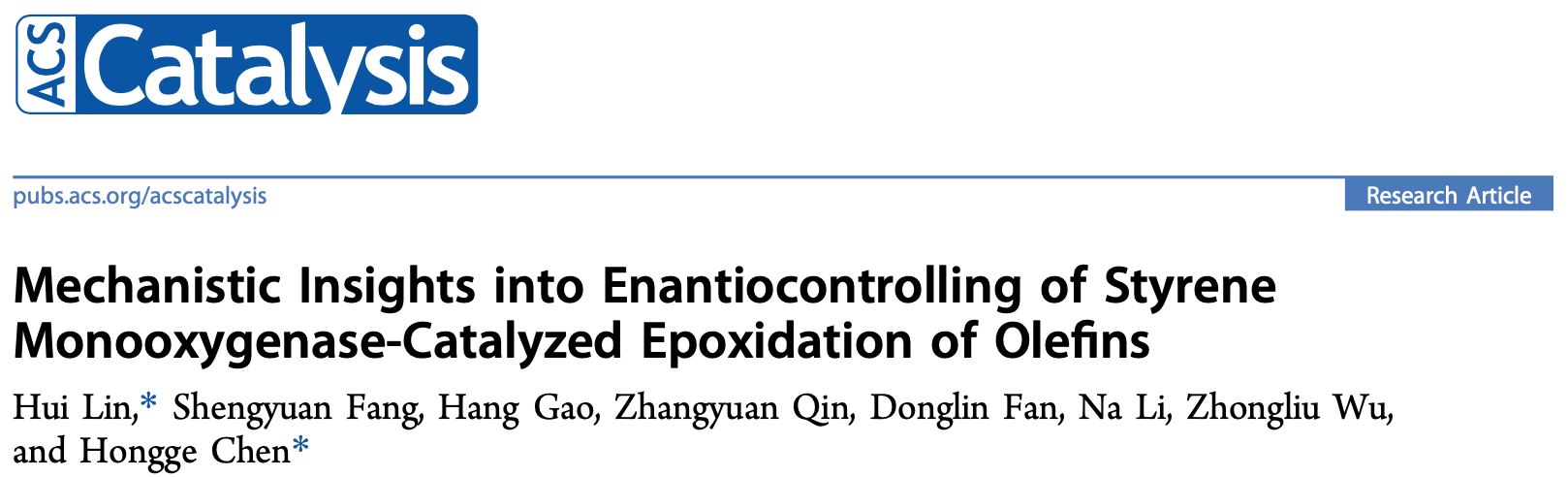 该成果以题为“Mechanistic insights into enantiocontrolling of styrene monooxygenase-catalyzed epoxidation of olefins”的研究论文(Research Article)在国际权威学术期刊ACS Catalysis (中科院一区Top期刊,IF: 12.9)上发表。林晖副教授为第一作者,陈红歌教授为通讯作者。本研究得到国家自然科学基金(32171472)的资助。