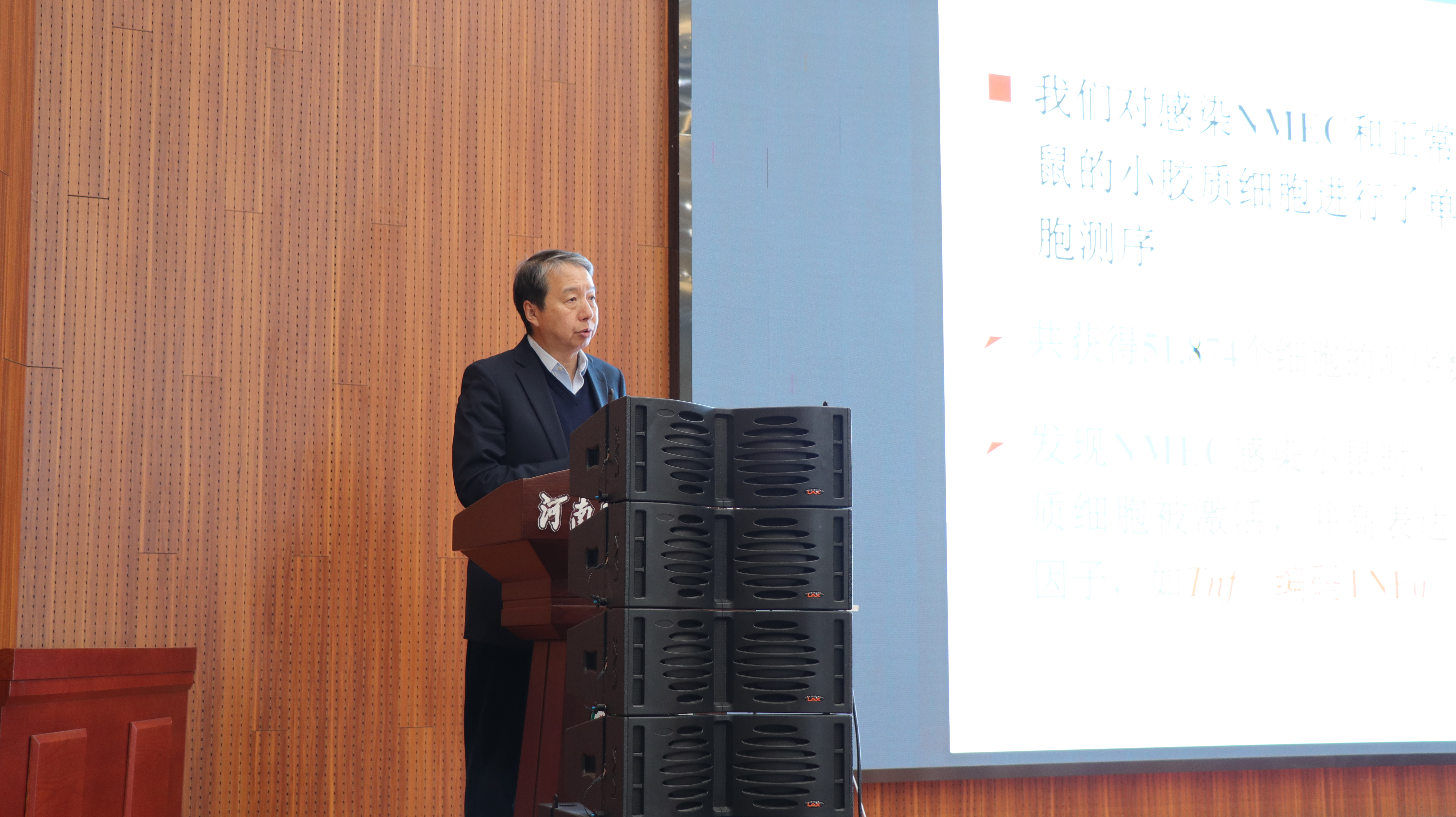 本网讯(通讯员 张继冉)3月8日上午,南开大学著名微生物学家王磊教授莅临我校,在龙子湖校区图书馆报告厅作了题为“病原菌响应宿主环境信号调控致病性的分子机制”的学术报告。本次报告会由尚富德教授主持,吸引了众多师生积极参加。
