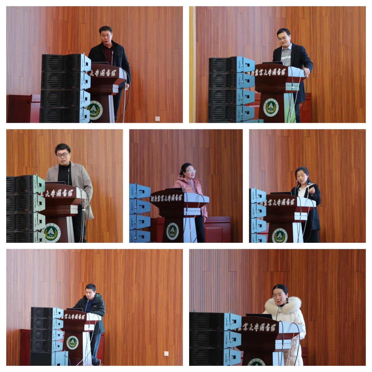 青年博士教师林晖、王燃、李涛、谢慧、刘凤琴、史雪盟、胡延如分别以“新型单加氧酶的挖掘、改造及应用”“作物萜类物质合成关键酶GGPPS的理性设计”“玉米种子拟轮枝镰孢菌抗性代谢物的鉴定及上游调控机制研究”“黄粉虫对黄曲霉毒素的转化及解毒机制解析”“长期芦苇收割对盐碱湿地温室气体排放及其相关微生物功能基因的影响”“棕榈酰化翻译后修饰在宿主免疫病毒感染中的调控机制研究”“Sirt2介导的去乙酰化修饰调控糙皮侧耳热胁迫抗性的作用研究”为题分享了各自科研团队研究进展。