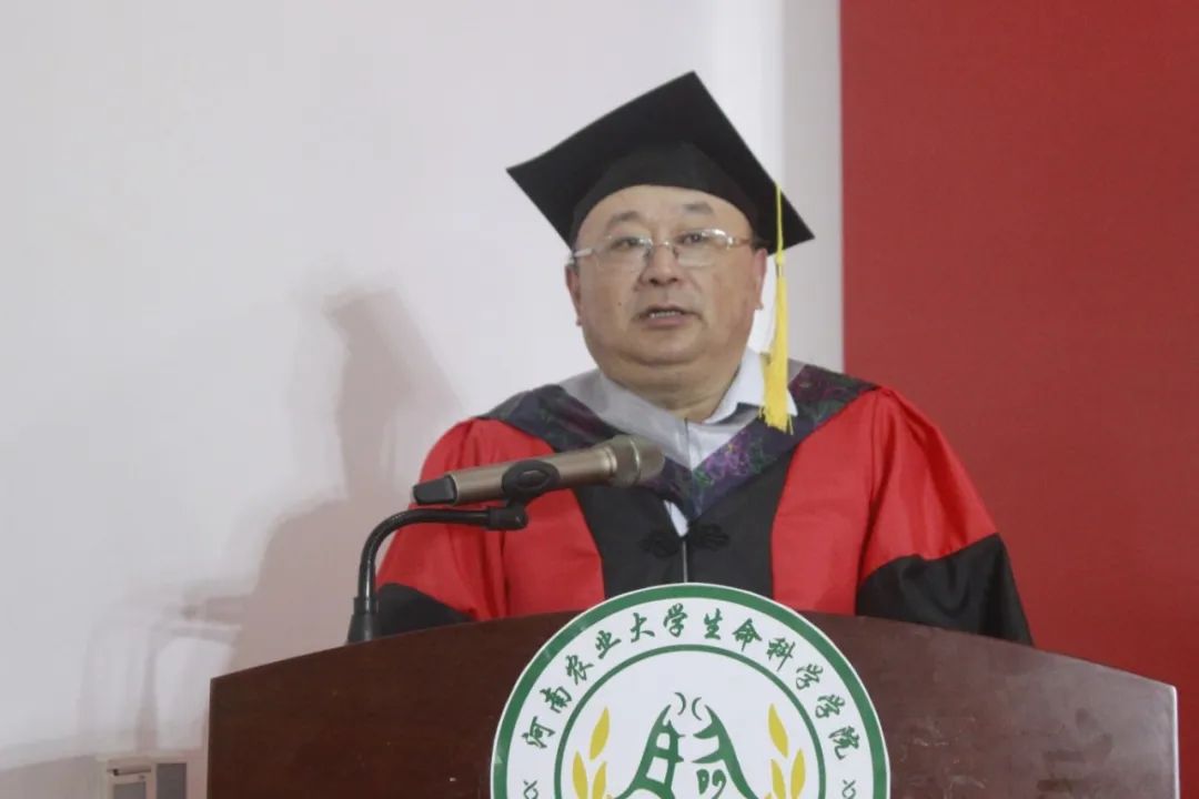 微生物学系副主任杨森教授发言,他对全体毕业生表达了殷切的祝愿,劝告大家珍惜过往,不忘初心;百折不挠,勇于拼搏;实事求是,坚守良知;全面发展,劳逸结合,在以后的生活中鹏程万里,在新的岗位上书写人生精彩新篇章!