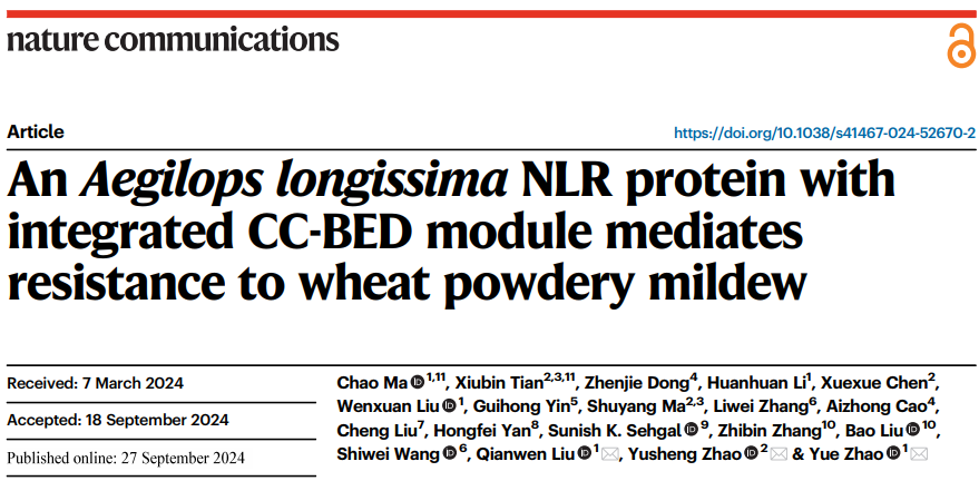 在读博士生马超与已毕业硕士田修斌(现为中国科学院遗传发育研究所在读博士生)为论文共同第一作者,赵月副教授、刘倩雯博士与中国科学院遗传发育研究所赵玉胜研究员为论文共同通讯作者;课题组刘文轩教授、李欢欢副教授与已毕业硕士生董振杰付出了辛勤的工作;我校殷贵鸿教授,南京农业大学曹爱忠教授,山东省农业科学院刘成研究员等参与了该研究。该研究得到国家自然科学基金等项目资助。