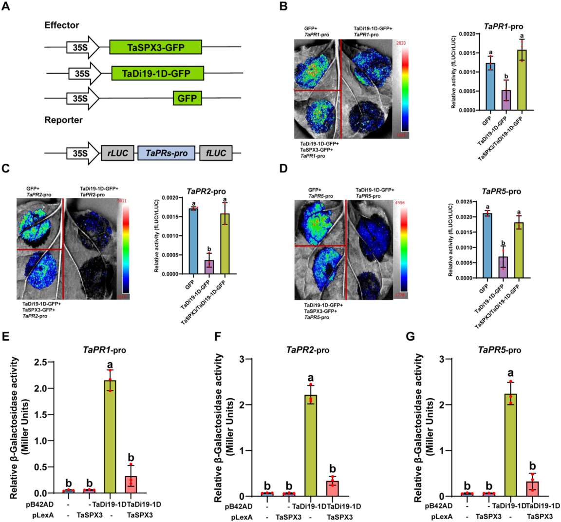 图3. TaSPX3与TaDi19的互作平衡调控小麦TaPRs的表达