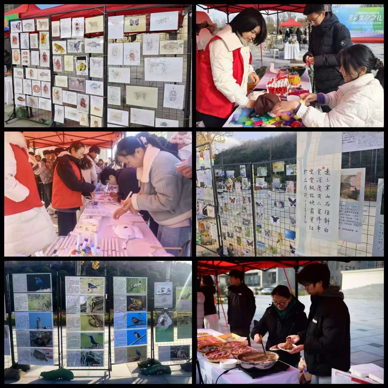 本届多彩生命文化节精心设置了“生命之源”“生命之美”“生命之趣”“生命之映”四大主题展区,各区域均围绕动物主题展开,亮点纷呈且内容丰富。走进“生命之源”展区,形态逼真的动物标本整齐陈列,每一件都栩栩如生,仿佛将动物的鲜活姿态定格于此。一旁的解剖示意图清晰明了,搭配创意生物结构泥塑,生动诠释出生命构造的精妙奥秘。而前沿科研成果展板则集中呈现了学院在动物科学领域的最新探索成果,详实的内容与直观的展示,让同学们得以沉浸式触摸学科前沿,近距离感受生命科学研究的独特魅力。步入“生命之美”展区,以动物为核心的艺术作品错落分布。树叶拼贴画将自然素材与动物形象巧妙结合,素描与彩绘作品则以细腻笔触勾勒出动物的灵动神韵,这些作品既展现了自然生命的本真美态,又融入了创作者的奇思妙想,让自然意趣与艺术创意在此处实现了巧妙交融,引得不少同学驻足欣赏、拍照留念。