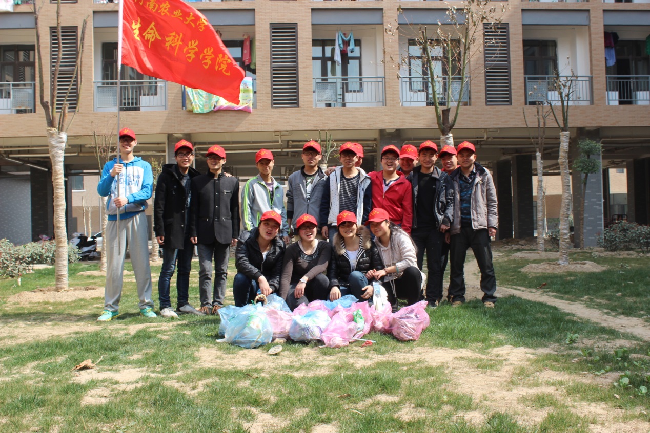 2014级学生在龙子湖校区开展了“保护环境 绿化校园”的捡垃圾志愿活动。