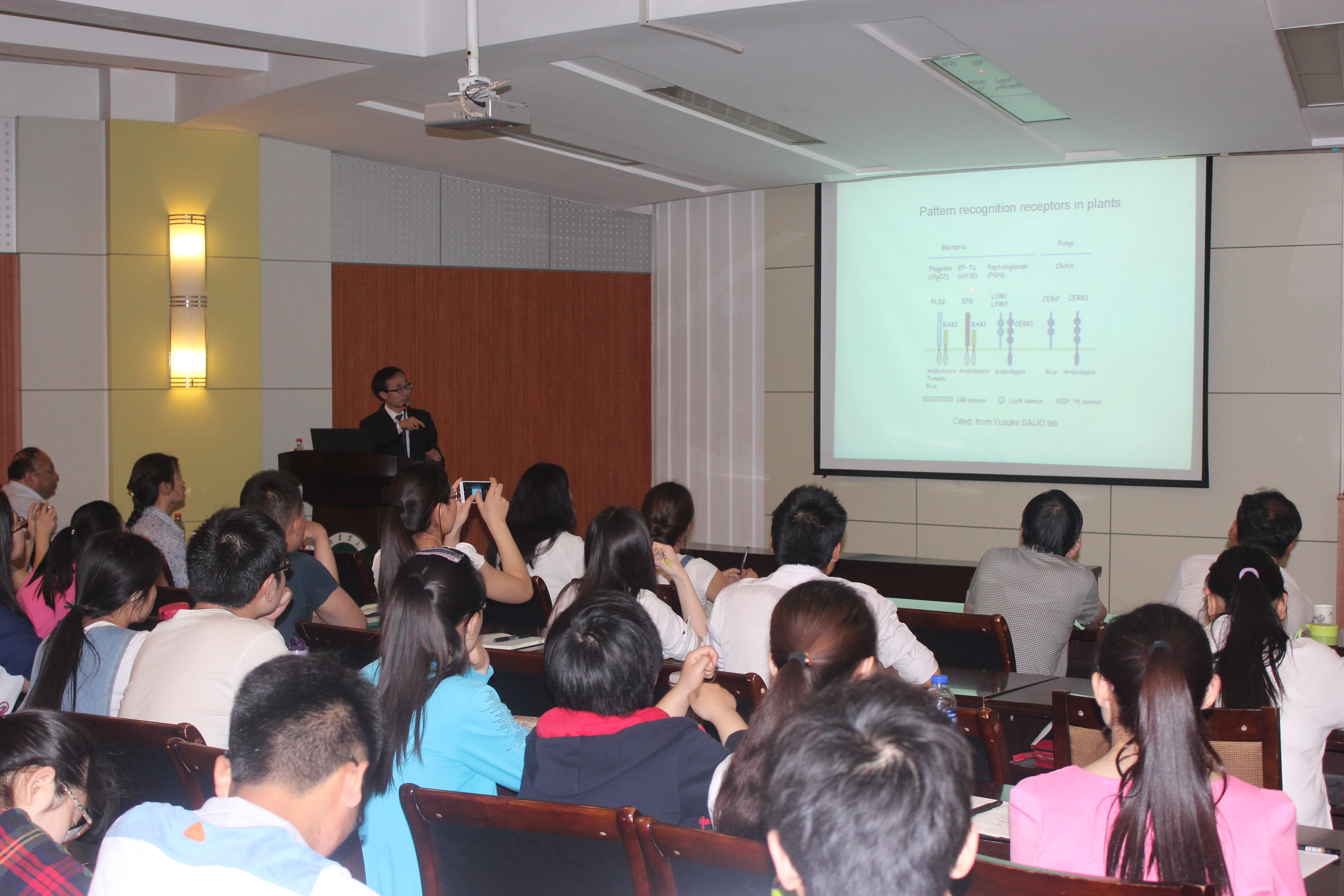 邀请,在我校文化路校区校礼堂100人报告厅,冯峰博士做了题为《Friends and foes,discrimination by plant symbiosis and immunity》的学术报告,参加报告会的有生命科学、农学院、植物保护等学院的广大师生。