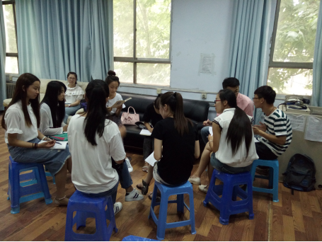 “两学一做”党员教育之“不忘初心,重温入党志愿”主题交流研讨会在一号楼309会议室进行,参会人员有第二党支部书记黄笑老师,团委辅导员姚欣老师和三个学生党支部正式党员和预备党员。