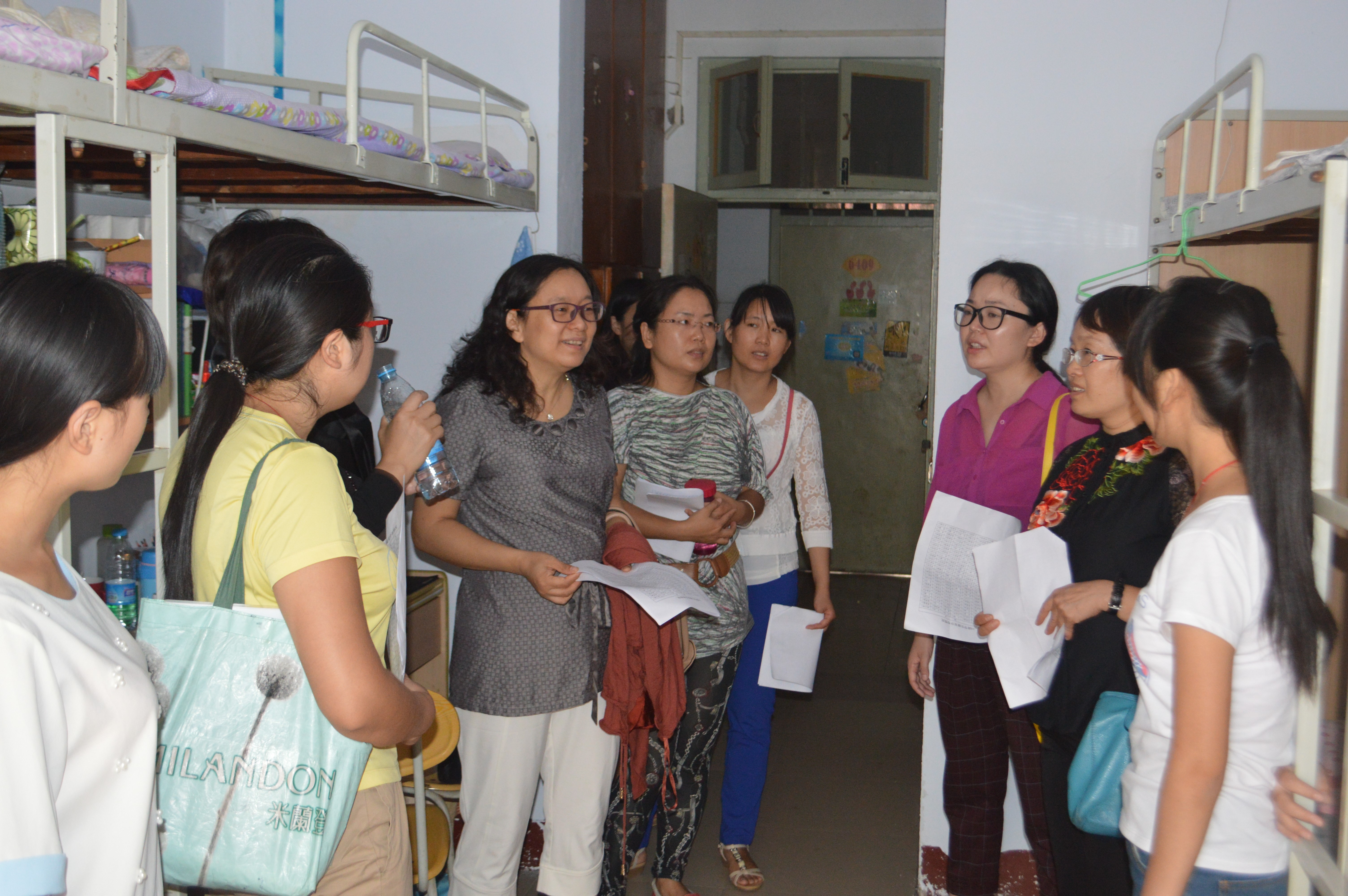 党委书记陈玲、院党委副书记刘全军、院团委老师程城、雷雯、黄笑、张培蕾、杜洋以及各班主任老师深入桃李园公寓,对色情片