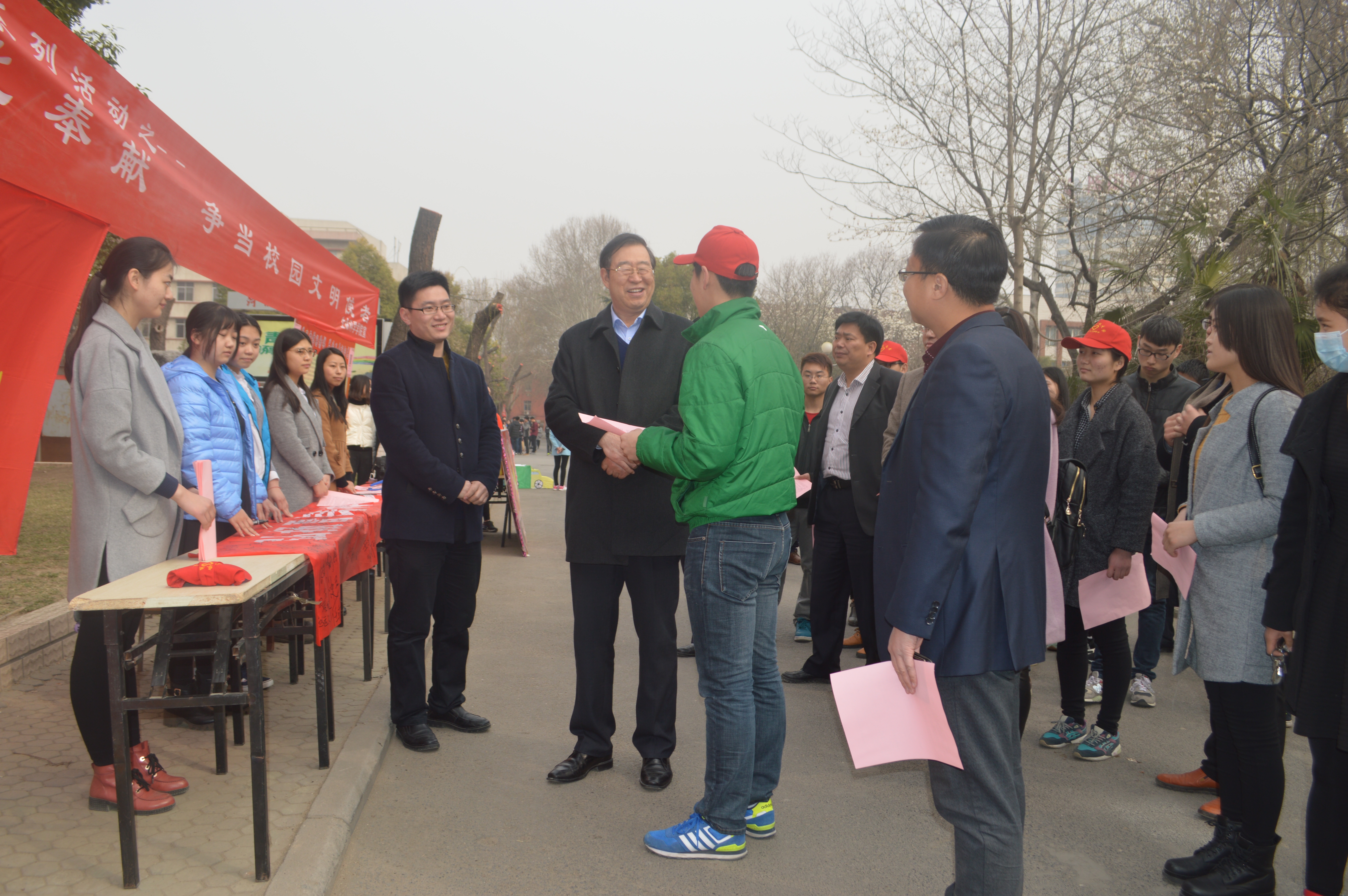 于3月5日在文化路校区三号楼前举办了“三大教育”系列活动之——“学雷锋比奉献,争当校园文明使者”活动。此次活动的组织及参与者有院学生党员志愿者、院青年志愿者协会成员、院SUNSHINE爱心社团成员、院学生会成员、院记者团成员。