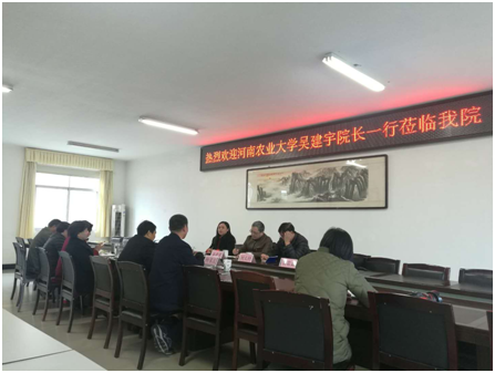张运栋代表漯河市农科院对吴建宇一行的到来表示热烈欢迎,重点介绍了农科院的历史、现状、重点发展方向、面临的一些问题等,希望通过这次交流切实加强科研合作。农科院副院长柳家友、副院长齐晓红、张仙美总农艺师及其他科研人员都结合自身工作做了发言。