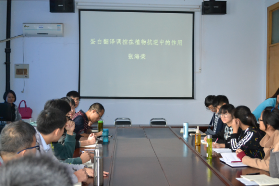 10月25日下午,校特聘教授张海荣老师在1号楼205会议室做了题为“蛋白翻译调控在植物抗逆中的作用”学术报告,色情片