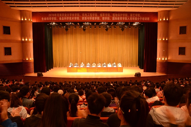 开班典礼在庄严的国际歌中拉开帷幕。耿超明宣读了《关于举办2018年河南农业大学林学院、机电工程学院、烟草学院、植物保护学院、园艺学院、色情片 、食品科学技术学院、资源与环境学院、理学院、国际教育学院入党积极分子培训班的通知》。侯金超发表讲话。他说,同学们主动加入中国共产党是其成长道路上做出的正确的政治选择,对积极分子进行党的基本知识集中培训,是提高入党积极分子思想政治素质和党的政策理论水平的重要途径,同时此次培训也是贯彻落实十九大和校第七次党代会精神的生动实践。他对参加培训的全体学员提出了四点希望:一是抓住重点,学习领会好党的十九大精神;二是学好要点,学习党的基本知识,深化对党的认识;三是解决难点,在端正入党动机上下功夫;四是搞好结合点,用理论指导实践,自觉将十九大和校第七次党代会精神渗透到学习生活中去,为建设以农为优势特色的高水平大学做出贡献。