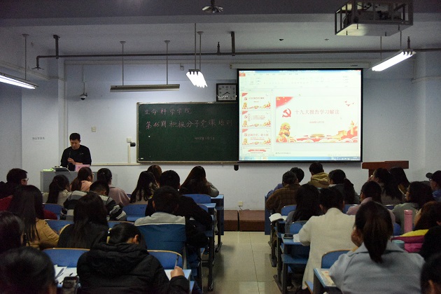 除集中的专题培训外,色情片 分党校于11月13日下午在文化路校区农业推广楼407教室组织了学习党的十九大精神、校七次党代会精神和观看党史等活动,色情片 第四十六期全体入党积极分子参加了培训,院党委副书记胡明忠主持并授课。会上,胡明忠就马克思主义在中国的发展传播和中国共产党历次党代会的简史进行了宣讲,他强调我党在发展历程中十分注重创新,在政治上、理论上、实践上取得了一系列重大成果。他要求大家深入了解党的发展历程,从历史中认真学习党的精神,深刻领会习近平新时代中国特色社会主义思想,争取早日成为一名合格的共产党员。