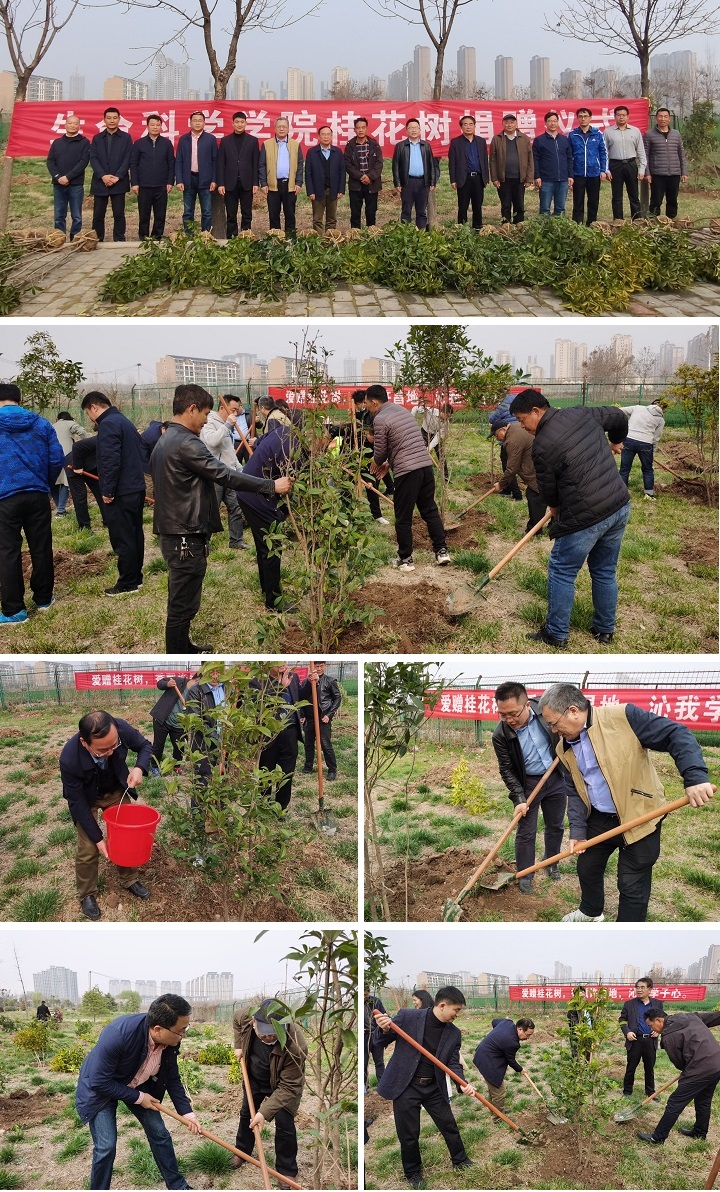 支援许昌校区造林绿化苗木捐赠仪式在许昌校区隆重举行。副校长尚富德,院党委书记张朝阳,院长吴建宇,副院长郑文明,副院长张会勇,许昌校区领导及师生代表等共同参加了仪式。仪式由许昌校区党委书记李建群主持。