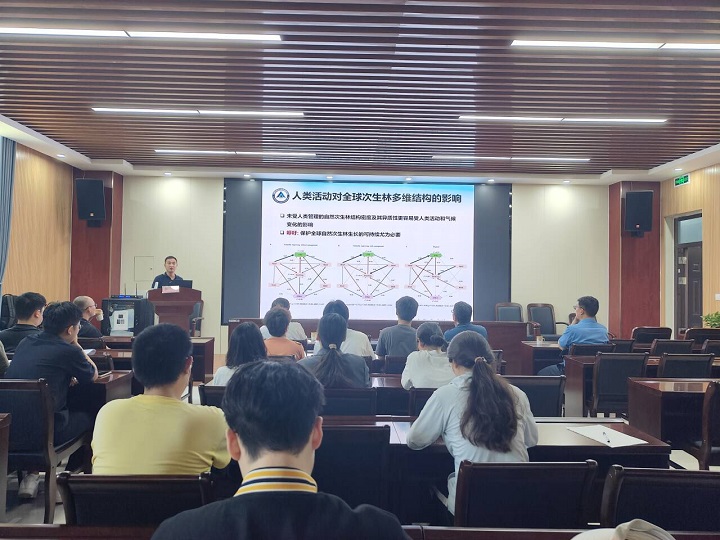 李旺以《人类主导环境下典型脆弱植被生态系统结构与功能的遥感监测》为题,深入解析了当前全球生物多样性面临的严峻挑战和气候危机的紧迫性,阐述了气候变化与人类活动对森林生态系统的双重冲击,介绍了多源遥感与人工智能技术在生态系统结构和功能监测中的应用。