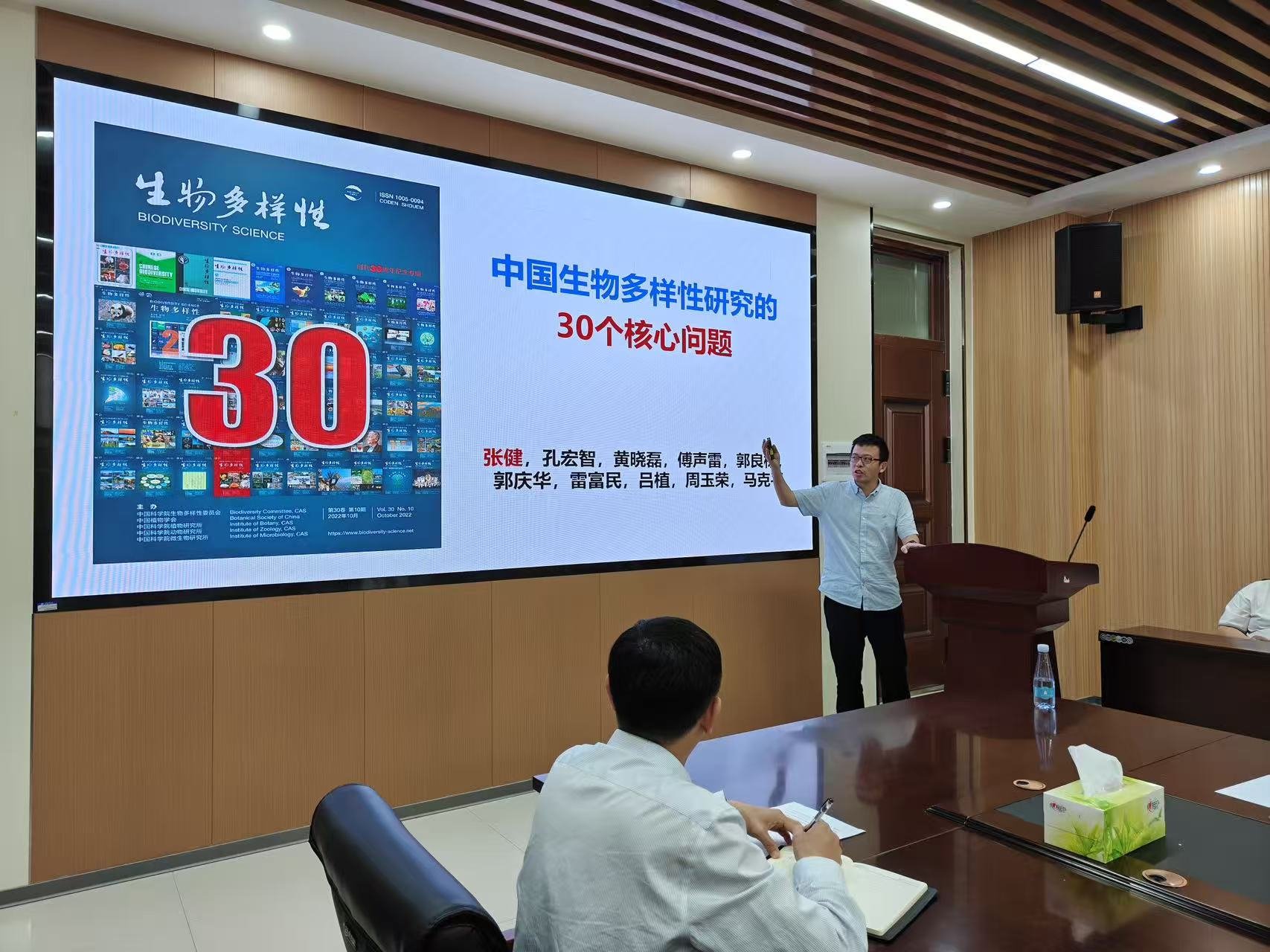 报告会上,张健以《中国生物多样性研究的30个核心问题》为题,从生态学的历史渊源切入,指出生态学是在博物学基础上发展而来的现代学科。随后,他围绕生物多样性研究的核心议题,系统阐述了演化与生态、种群动态、群落与多样性、生态系统功能、人类活动与全球变化、研究方法与监测技术、生物多样性保护等七大领域的关键科学问题,并重点分析了群落与多样性、人类影响与全球变化、方法与监测和生物多样性保护等前沿方向。此外,他还向在座师生科普了山地系统(BEST)的重要性和其他生态学问题,对大家提出的问题给出了自己独特的见解。